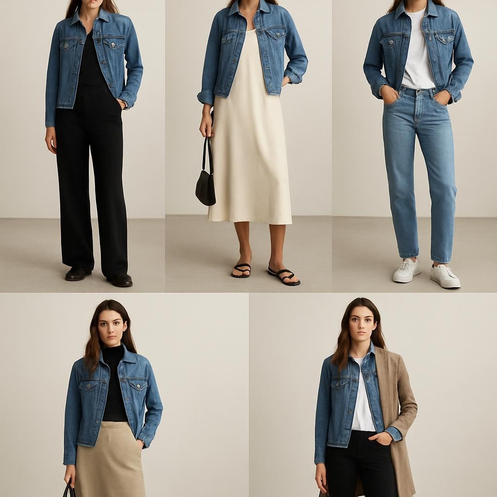 Hvis du vil have denimjakken med på kontoret, kan du style den sammen med habitbukser eller en midi-nederdel. Vælg en enkel top under, og hold accessories minimalistiske. Loafers eller ballerinaer gør looket mere sofistikeret.