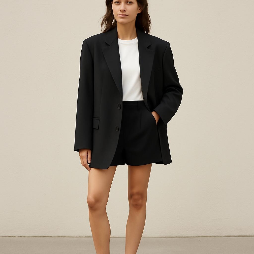 På arbejdet kan du style blazeren over en skjorte eller rullekrave og kombinere den med habitbukser eller en midi-nederdel. Loafers eller enkle hæle tilføjer professionalisme. Tricket er at holde farverne neutrale – beige, sort, navy eller grå – for at give et poleret udtryk.